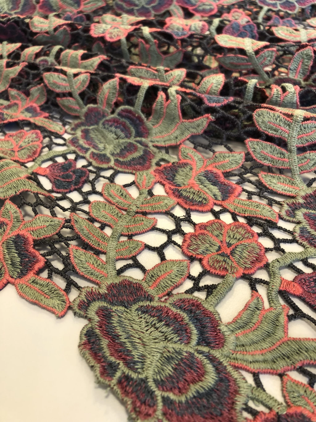 A Renda Guipure é um tecido conhecido por seus desenhos em relevo formados por fios trabalhados, sem fundo de tule. Rica em detalhes, possui aspecto rendado mais firme e estruturado, trazendo elegância e requinte às peças. É muito utilizada em vestidos de festa, noivas, detalhes em blusas, saias, aplicações e até em combinações com outros tecidos delicados.