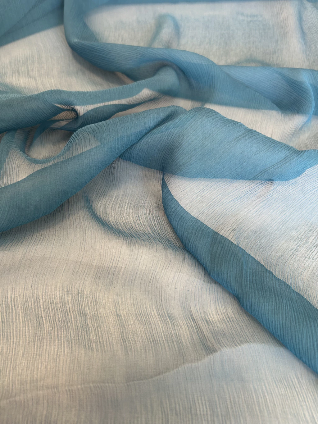 O Chiffon De Seda Pura é um tecido leve, fino e delicado, conhecido por sua textura, com amassadinhos que trazem sua característica principal. Além da transparência sutil e caimento fluido. Possui toque macio e elegante, perfeito para criar peças sofisticadas e com movimento, como vestidos de festa, blusas, saias, lenços e detalhes esvoaçantes.