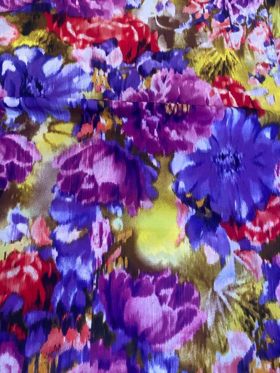 O Crepe Estampado é um tecido leve, com caimento fluido, toque levemente áspero devido a textura característica do crepe. Perfeito para vestidos, saias, blusas e camisas, o crepe é versátil e transita bem entre produções casuais e formais. Além disso, sua maleabilidade garante um ótimo ajuste ao corpo, valorizando o movimento e a modelagem.