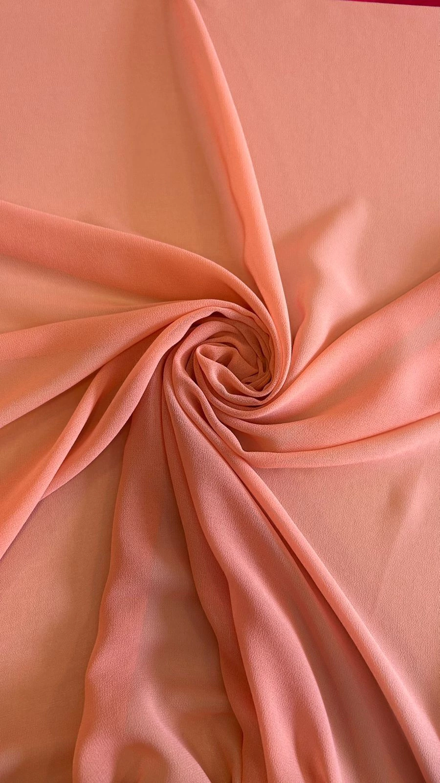 Crepe Georgete Leve é um tecido conhecido por sua fluidez, caimento delicado, toque macio e textura levemente granulada, é perfeito para peças elegantes e atemporais. Sua leve transparência traz charme e versatilidade, sendo ideal para vestidos de festa, blusas, camisas, saias e detalhes delicados em produções sob medida.