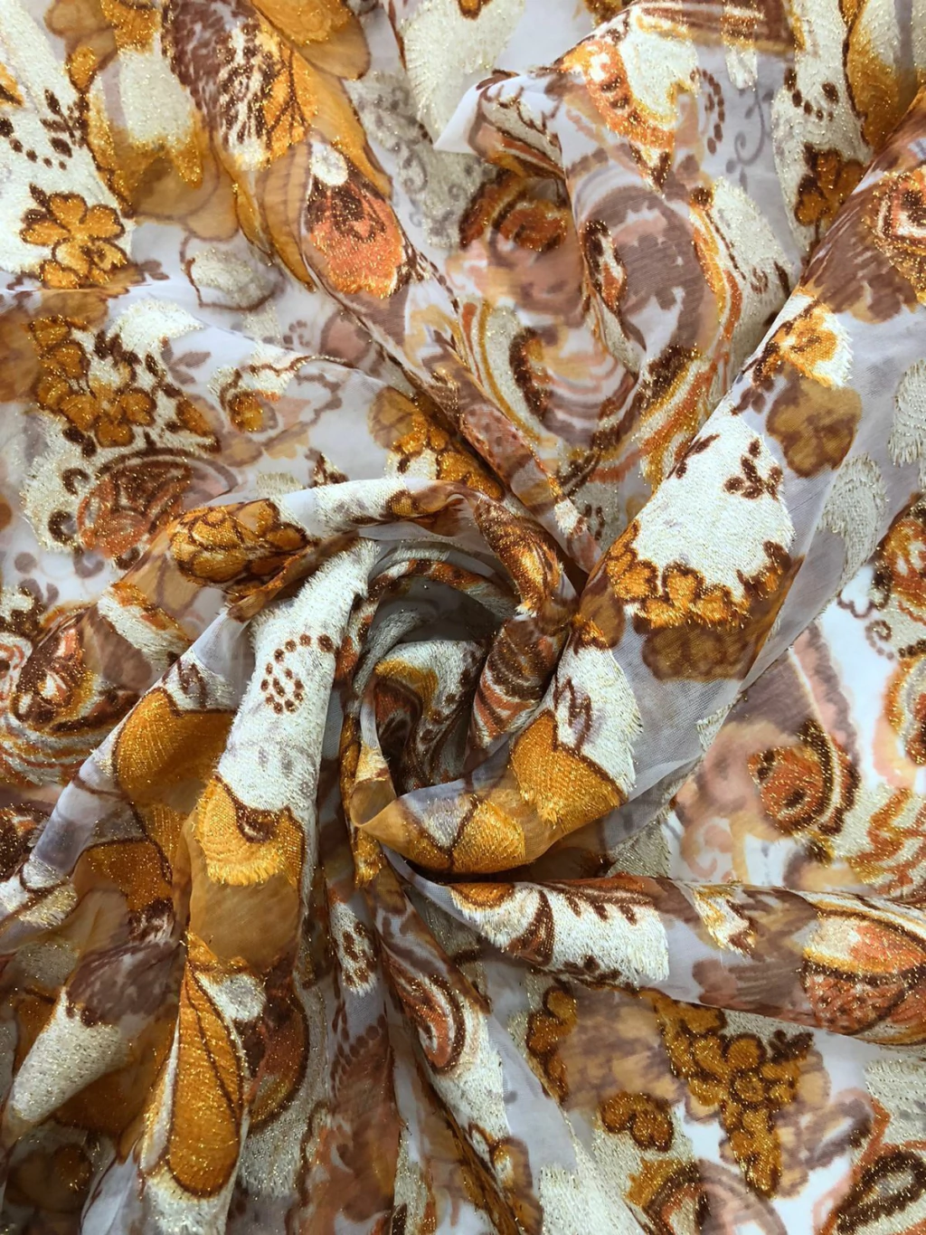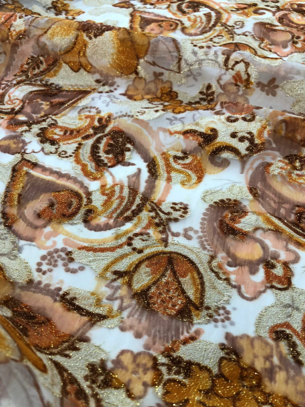 O Devorê de Seda é um tecido leve, delicado e extremamente sofisticado, que se destaca pelo seu visual diferenciado. Ele é produzido a partir de uma técnica especial que remove parte do fio em padrões determinados, criando desenhos em transparência sobre uma base de seda pura. Com toque macio, caimento fluido e brilho suave, o Devorê de Seda é perfeito para peças elegantes e femininas, como blusas, camisas, vestidos, kaftans e sobreposições. Sua transparência estratégica permite composições criativas com forros e sobreposições, resultando em peças únicas e cheias de charme.