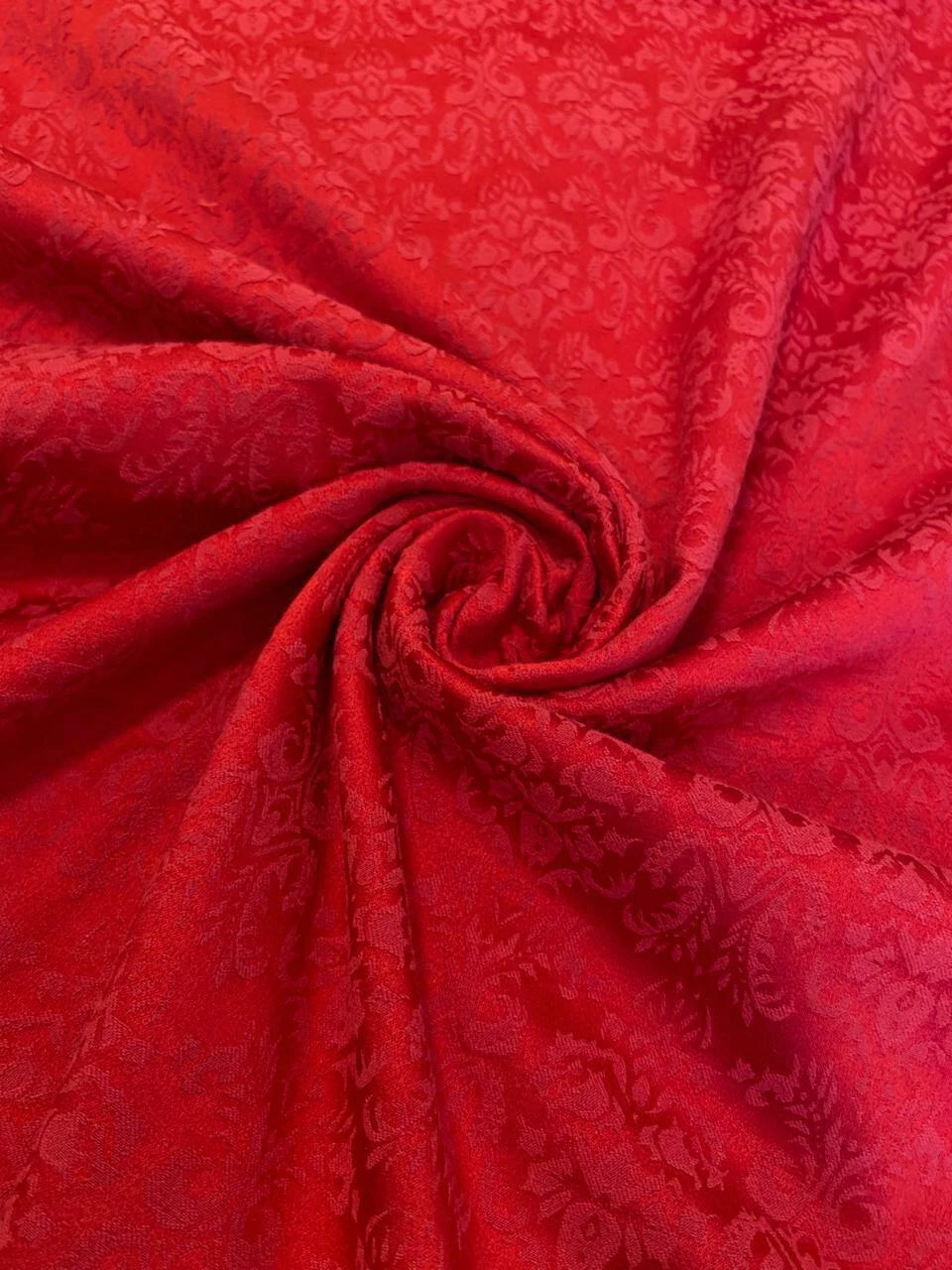 O Jacquard Brocado é um tecido sofisticado, conhecido por seus desenhos e padrões em alto-relevo, e detalhes metalizados ou contrastantes, que trazem brilho e destaque às tramas. Com estrutura encorpada e ótimo caimento, é ideal para peças que pedem uma estrutura média, como vestidos de festa, saias, casacos, blazers, roupas de gala e até decoração, como almofadas e cortinas. Se você busca um tecido que une requinte, textura e beleza atemporal, o Jacquard Brocado é a escolha perfeita.