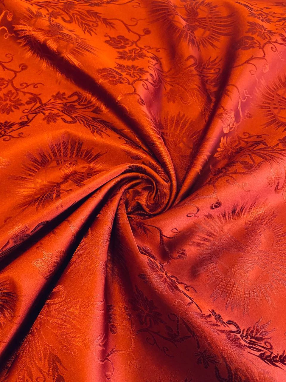O Jacquard Litúrgico é um tecido com desenhos religiosos ou simbólicos trabalhados diretamente na trama, sem o uso de estampa. Produzido com fios entrelaçados em teares especiais, possui excelente definição de padrões, brilho suave e um toque encorpado. É ideal para vestimentas litúrgicas, como túnicas, estolas, capas, véus, toalhas de altar e ornamentos religiosos em geral. Sua estrutura firme garante um caimento elegante e tradicional, valorizando o simbolismo e a solenidade das peças confeccionadas.