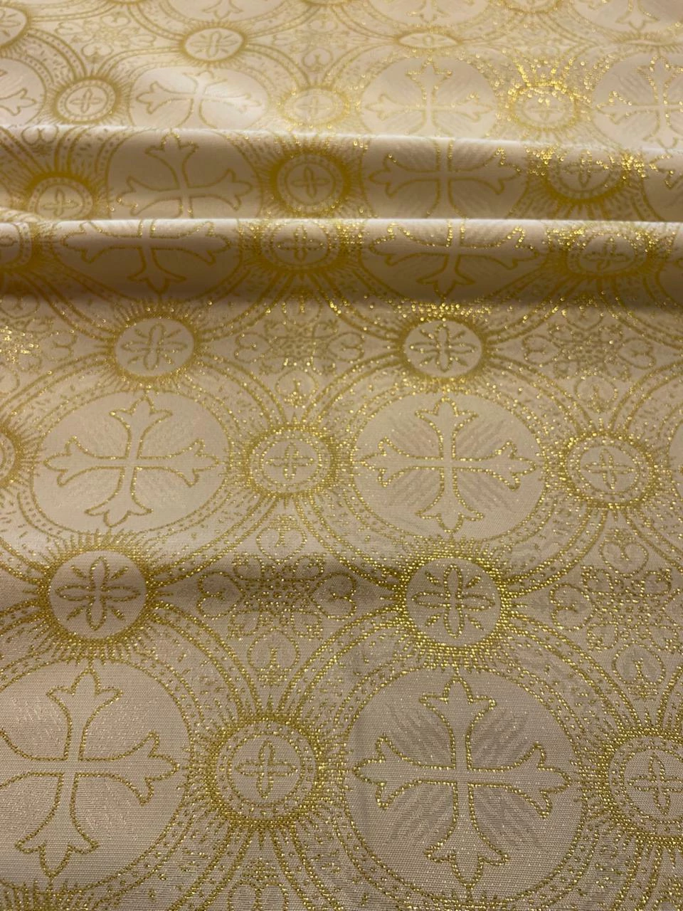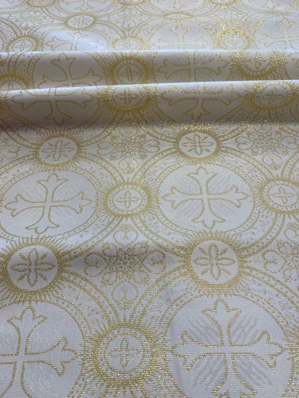 O Jacquard Litúrgico é um tecido com desenhos religiosos ou simbólicos trabalhados diretamente na trama, sem o uso de estampa. Produzido com fios entrelaçados em teares especiais, possui excelente definição de padrões, brilho suave e um toque encorpado. É ideal para vestimentas litúrgicas, como túnicas, estolas, capas, véus, toalhas de altar e ornamentos religiosos em geral. Sua estrutura firme garante um caimento elegante e tradicional, valorizando o simbolismo e a solenidade das peças confeccionadas.