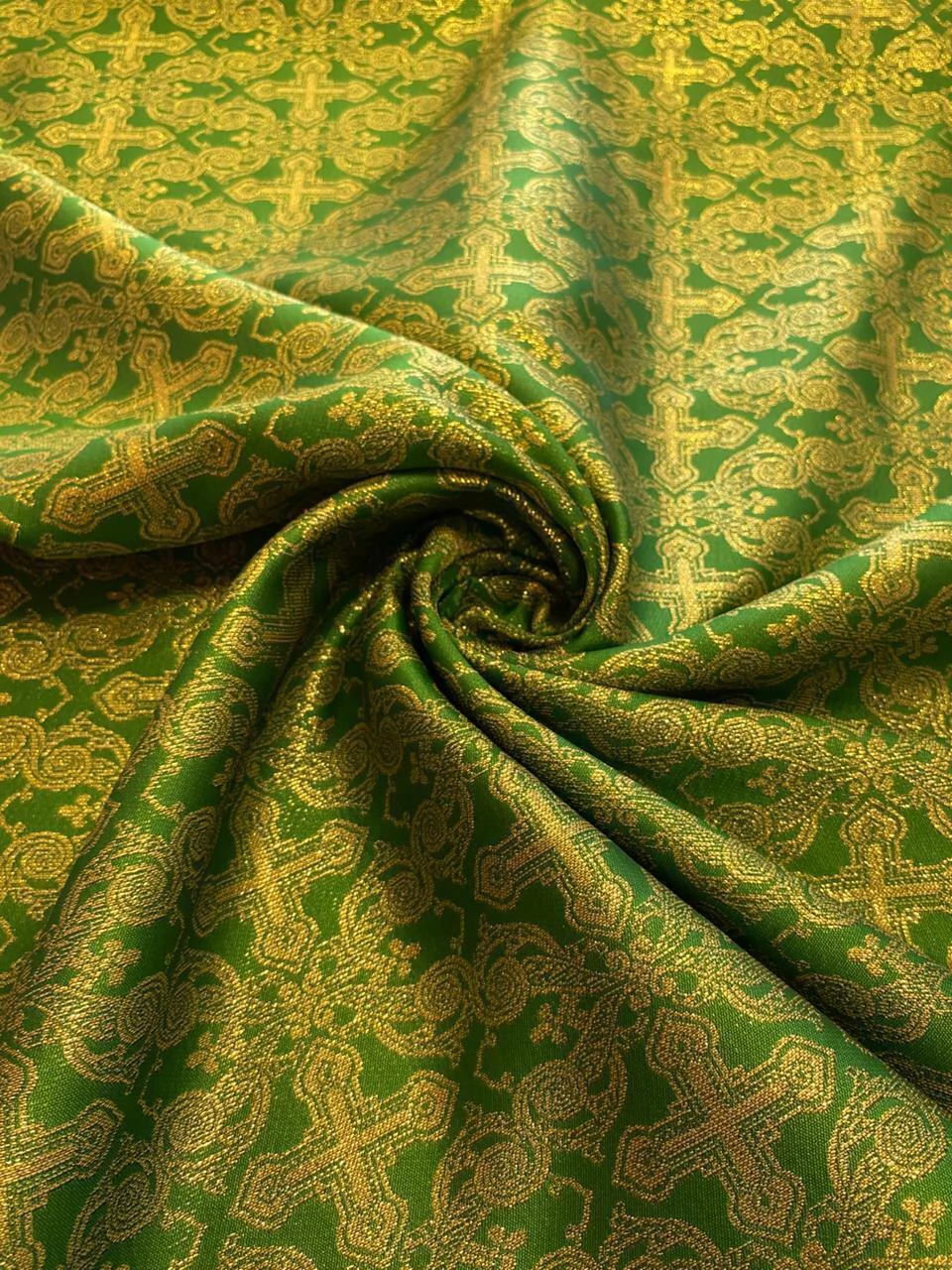O Jacquard Litúrgico é um tecido com desenhos religiosos ou simbólicos trabalhados diretamente na trama, sem o uso de estampa. Produzido com fios entrelaçados em teares especiais, possui excelente definição de padrões, brilho suave e um toque encorpado. É ideal para vestimentas litúrgicas, como túnicas, estolas, capas, véus, toalhas de altar e ornamentos religiosos em geral. Sua estrutura firme garante um caimento elegante e tradicional, valorizando o simbolismo e a solenidade das peças confeccionadas.