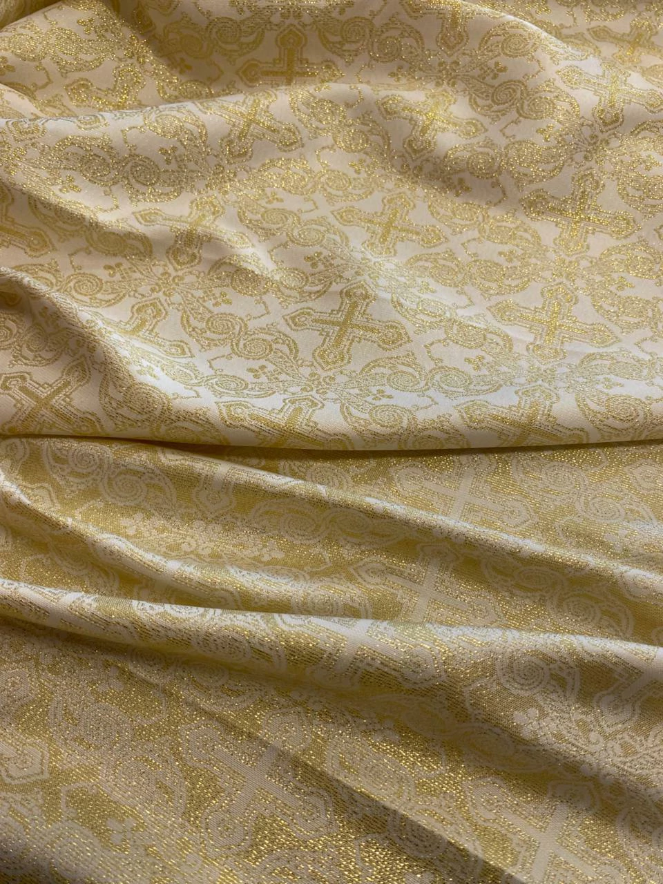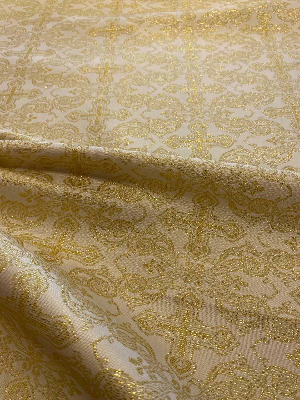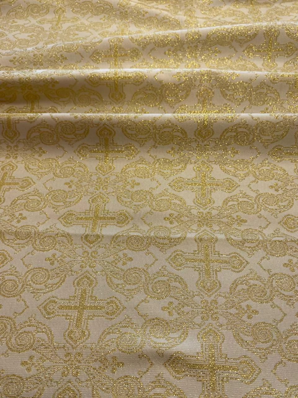 O Jacquard Litúrgico é um tecido com desenhos religiosos ou simbólicos trabalhados diretamente na trama, sem o uso de estampa. Produzido com fios entrelaçados em teares especiais, possui excelente definição de padrões, brilho suave e um toque encorpado. É ideal para vestimentas litúrgicas, como túnicas, estolas, capas, véus, toalhas de altar e ornamentos religiosos em geral. Sua estrutura firme garante um caimento elegante e tradicional, valorizando o simbolismo e a solenidade das peças confeccionadas.