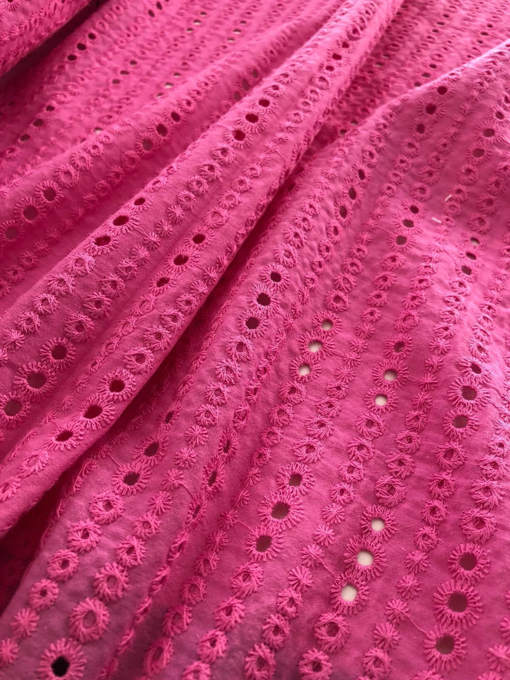 A laise 100% algodão é um tecido leve, respirável e confortável, perfeito para os dias mais quentes. Com sua característica mais marcante – os bordados vazados que formam desenhos florais ou geométricos – a laise traz feminilidade e charme para peças como vestidos, blusas, saias, camisas e até roupas infantis, sendo a melhor escolha criações que pedem leveza, elegância e frescor.