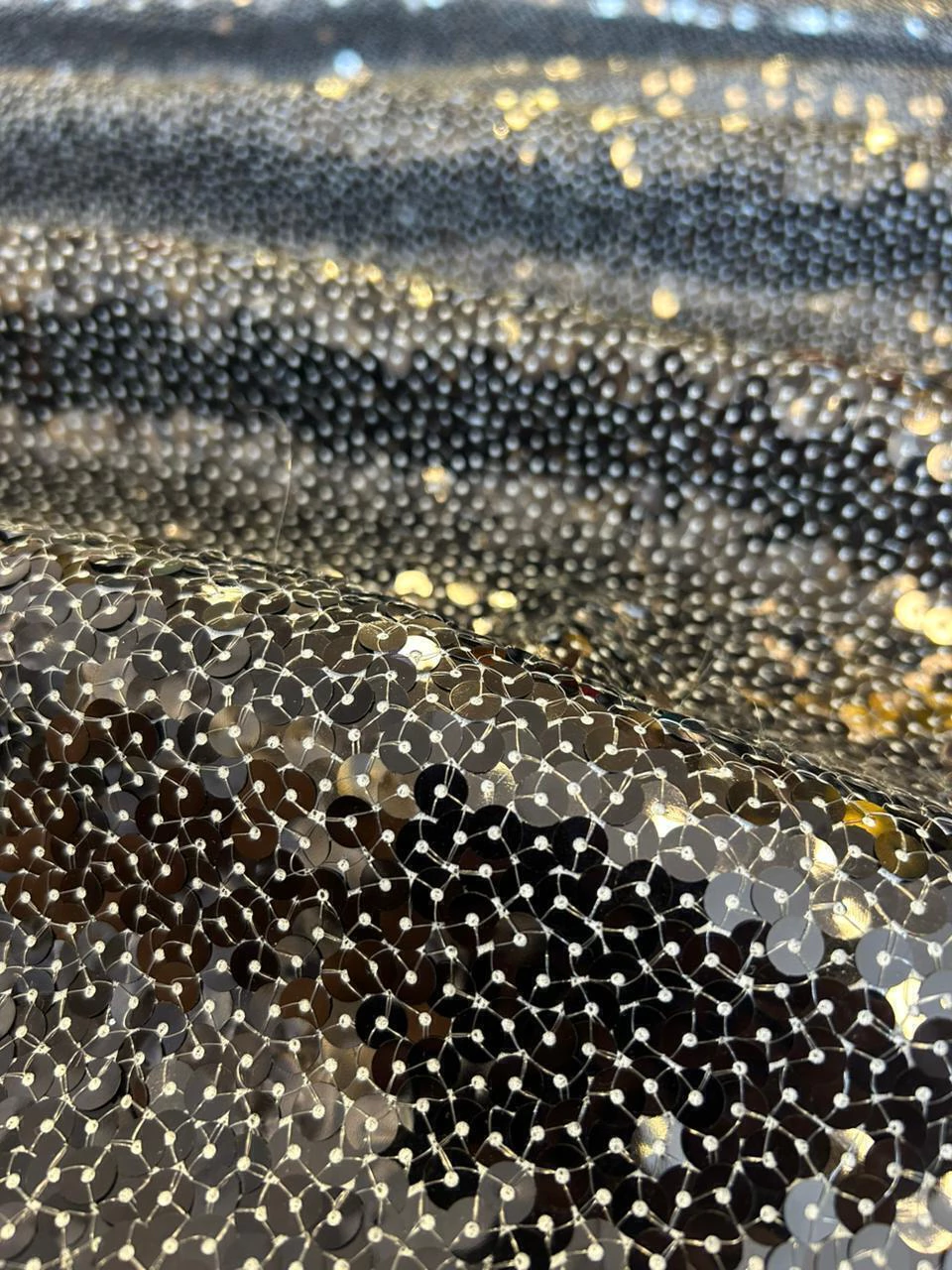 O Paetê é um tecido que possui brilho, sendo ideal para produções elaboradas como festas, eventos e moda festa. Sua base pode ser encontrada em tules ou malhas, que garantem um caimento versátil, permitindo criar desde vestidos longos, saias, blusas, casacos e detalhes em roupas casuais.