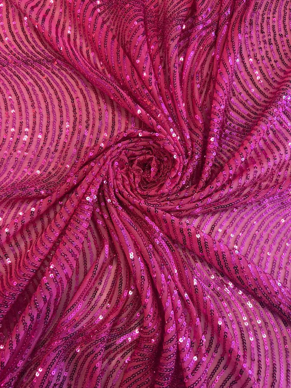 O Paetê é um tecido que possui brilho, sendo ideal para produções elaboradas como festas, eventos e moda festa. Sua base pode ser encontrada em tules ou malhas, que garantem um caimento versátil, permitindo criar desde vestidos longos, saias, blusas, casacos e detalhes em roupas casuais.