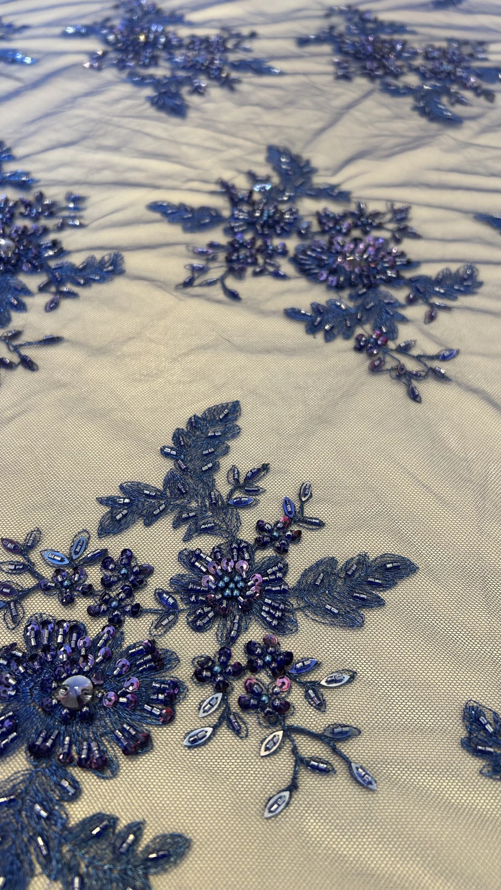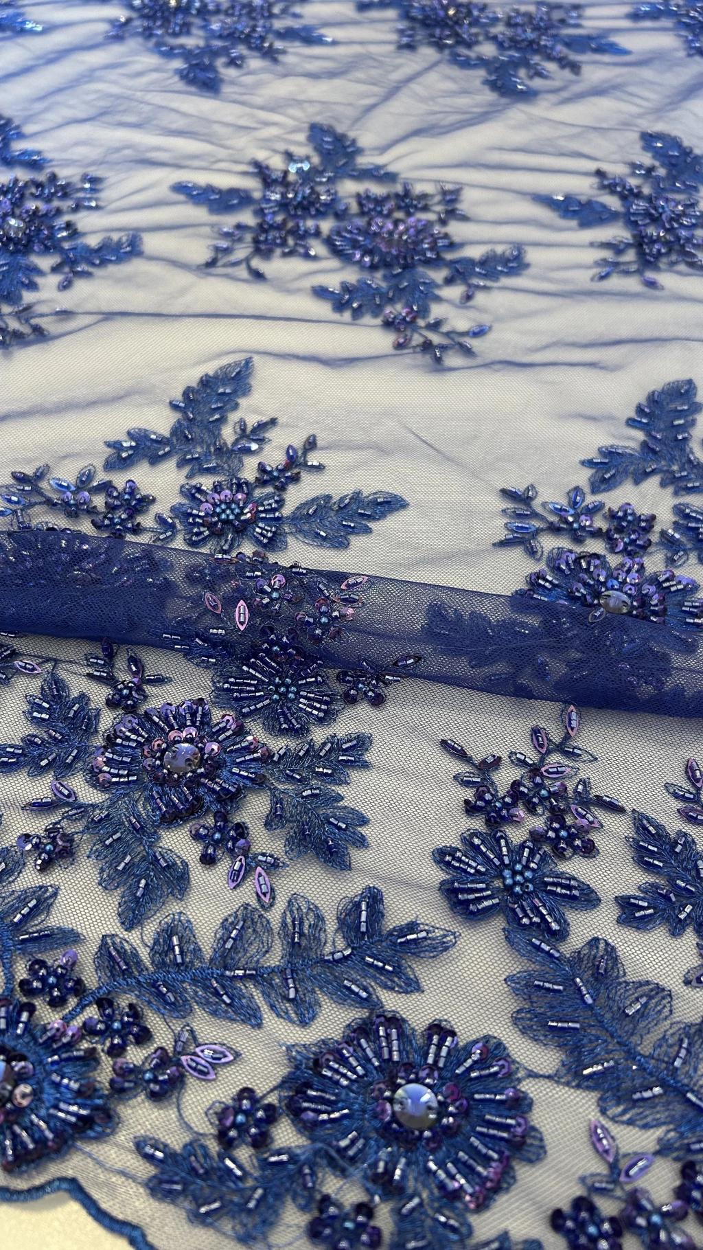 A Renda Bordada com Pedrarias é elegante, sofisticada, clássica, delicada e atemporal, sendo um símbolo dos tecidos mais desejados na moda festa e noiva. Aplicada sobre bases de tule, ela combina a transparência sutil com o brilho refinado das pedrarias, pérolas, e paetês, criando um visual luxuoso.