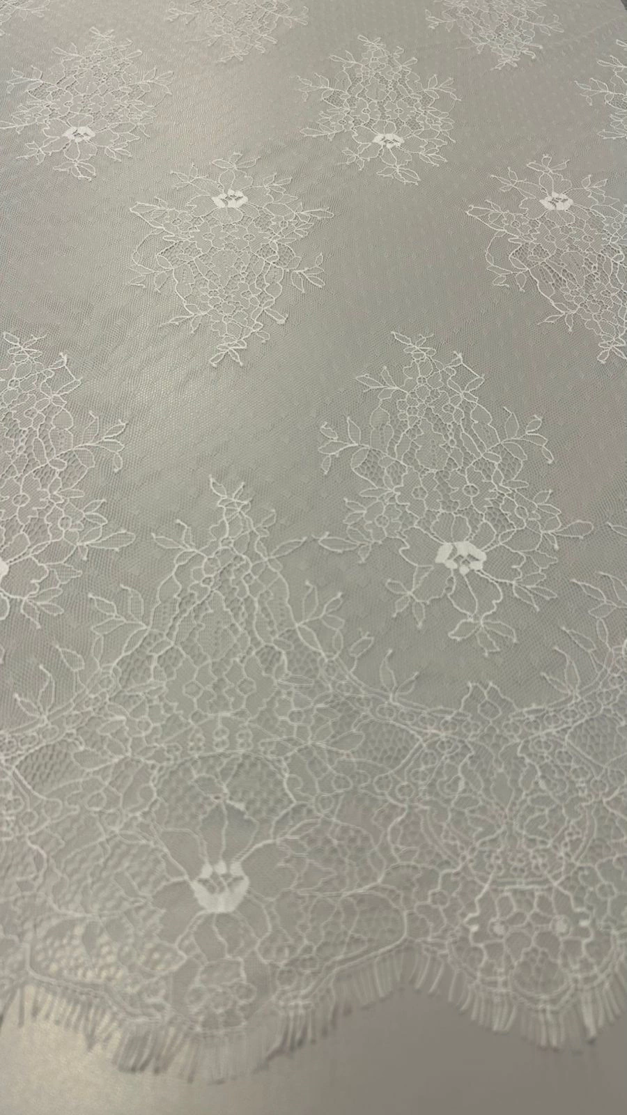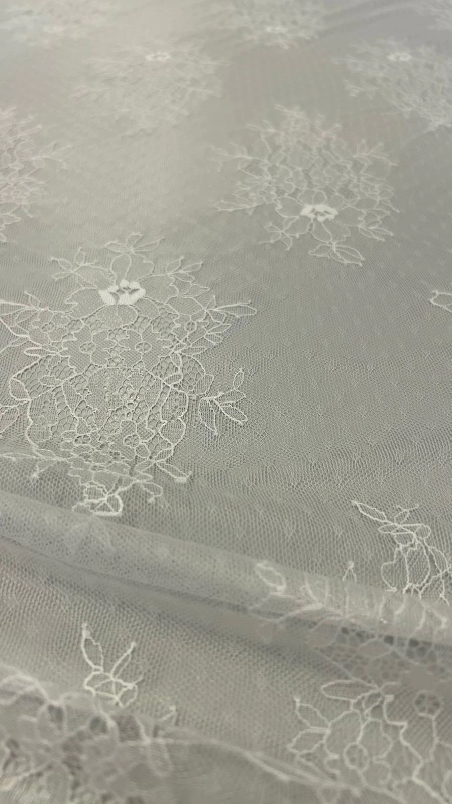 A Renda Chantilly é leve, delicada e extremamente sofisticada. Perfeita para vestidos de noiva, festa e detalhes refinados. Possui toque macio, caimento fluido e desenhos florais que traduzem romantismo e elegância. Renda em cortes de 3,00m (300cm), valor do metro R$100,00/m.