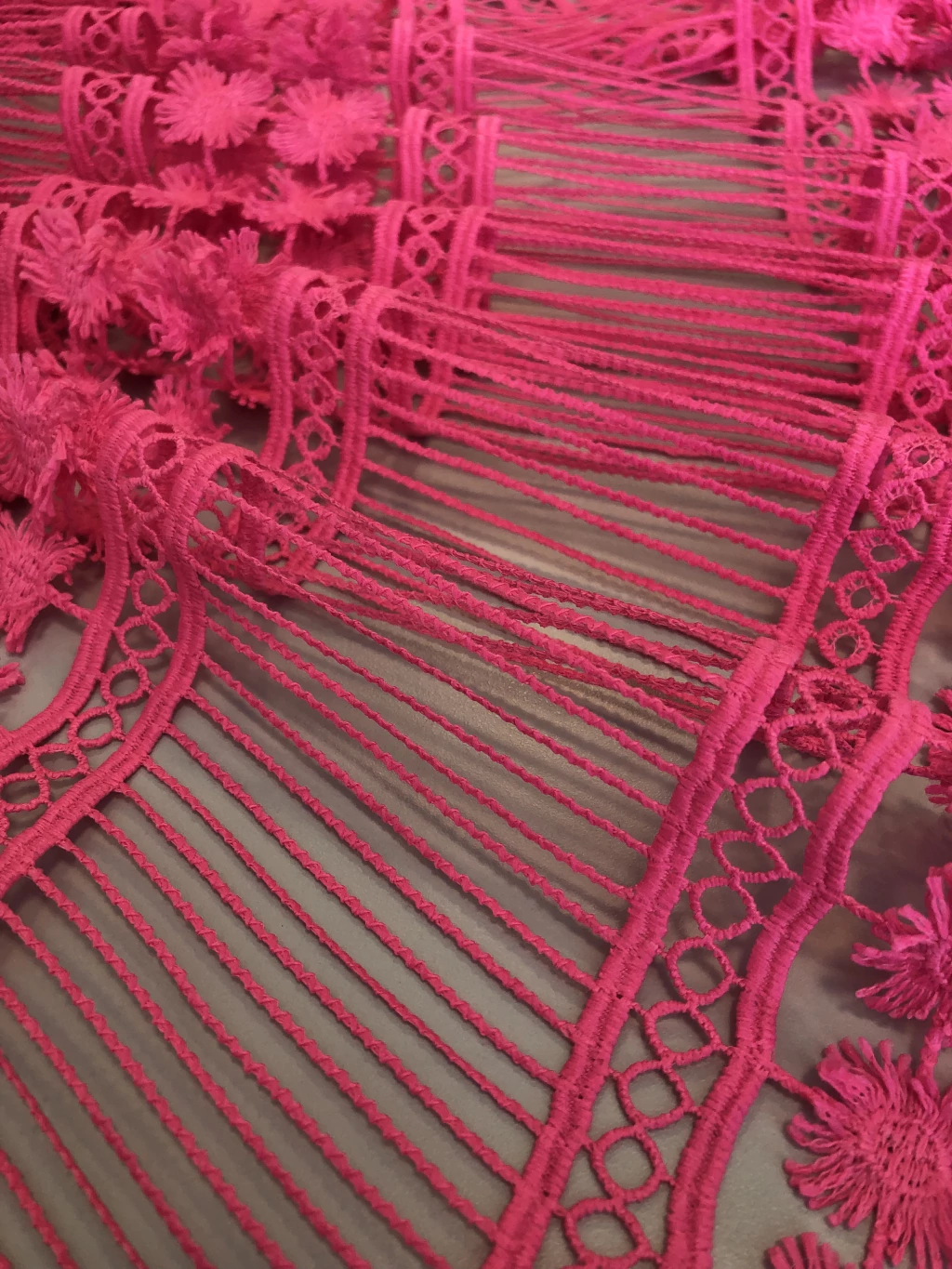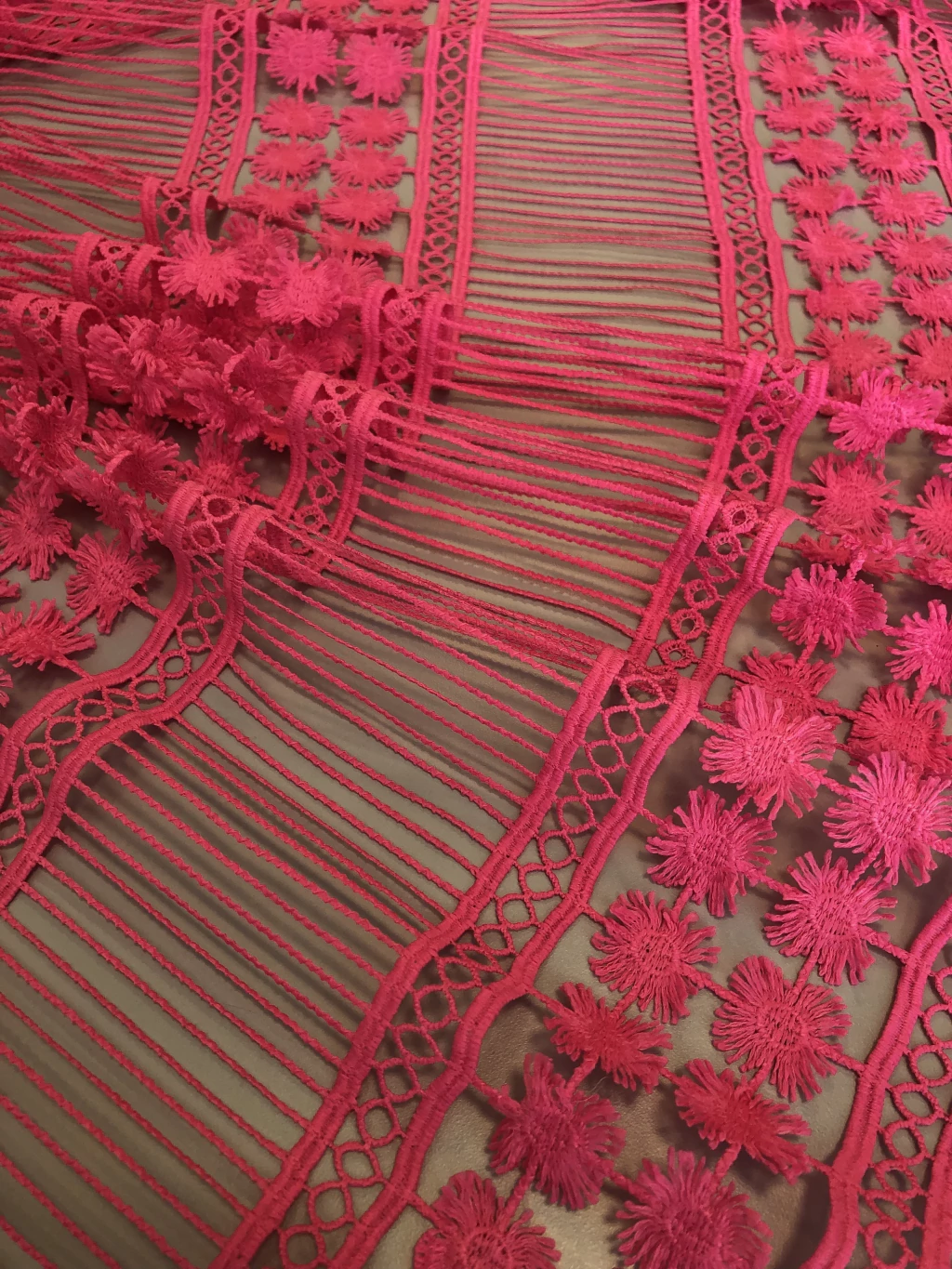 A Renda Guipure é um tecido conhecido por seus desenhos em relevo formados por fios trabalhados, sem fundo de tule. Rica em detalhes, possui aspecto rendado mais firme e estruturado, trazendo elegância e requinte às peças. É muito utilizada em vestidos de festa, noivas, detalhes em blusas, saias, aplicações e até em combinações com outros tecidos delicados.