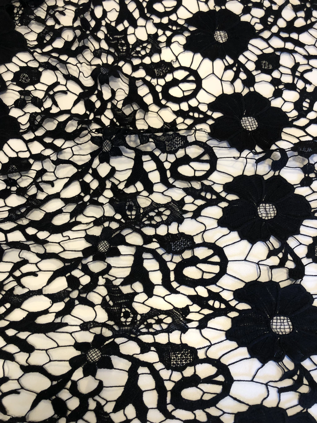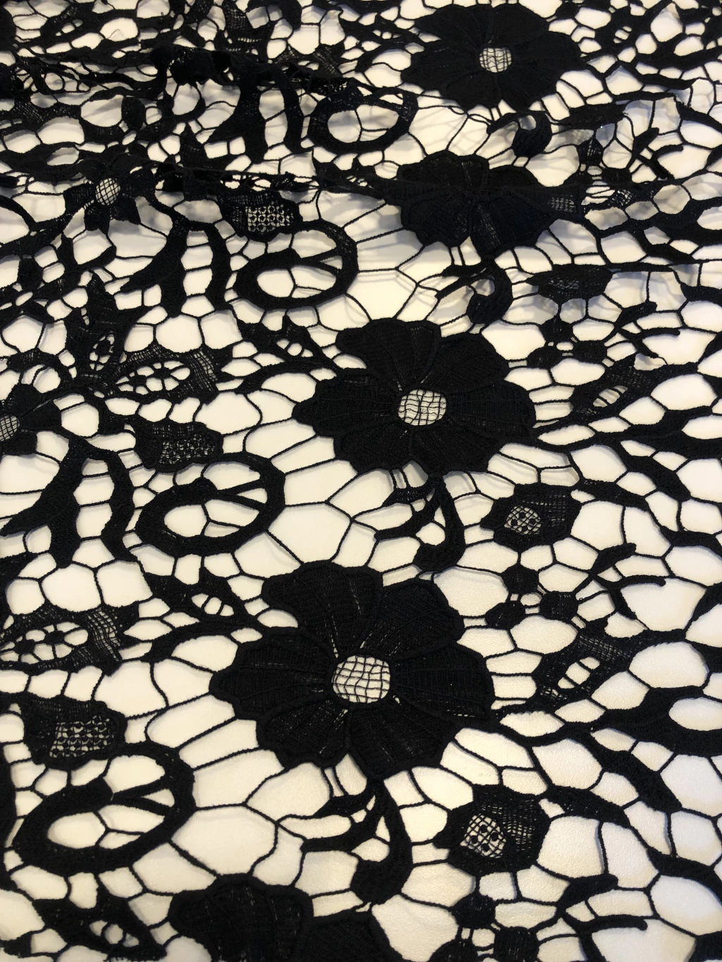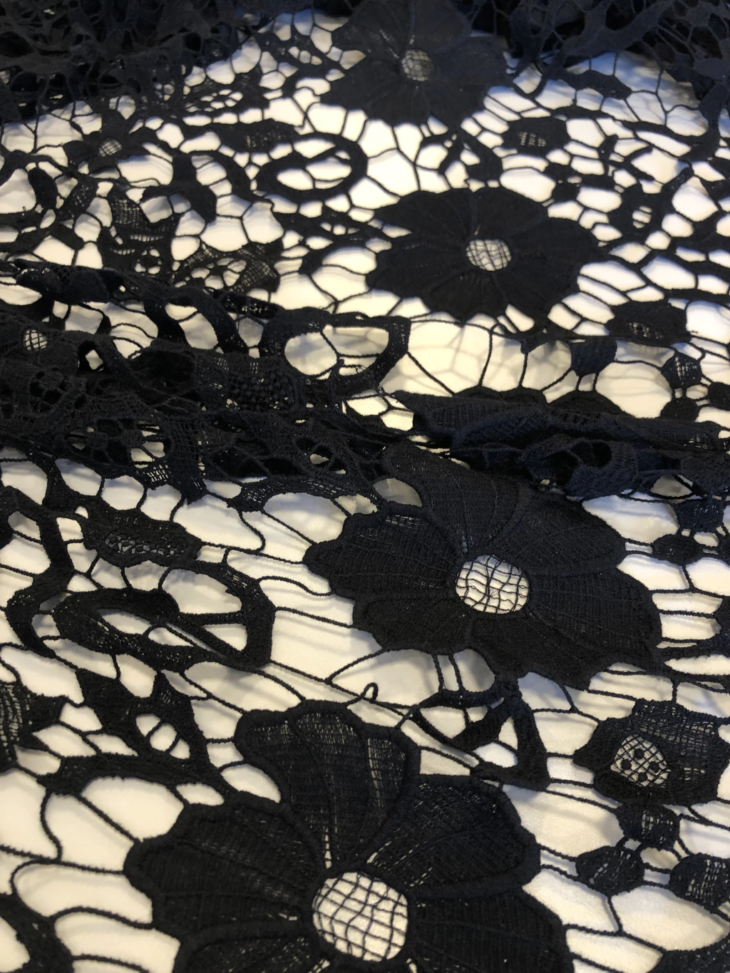 A Renda Guipure é um tecido conhecido por seus desenhos em relevo formados por fios trabalhados, sem fundo de tule. Rica em detalhes, possui aspecto rendado mais firme e estruturado, trazendo elegância e requinte às peças. É muito utilizada em vestidos de festa, noivas, detalhes em blusas, saias, aplicações e até em combinações com outros tecidos delicados.