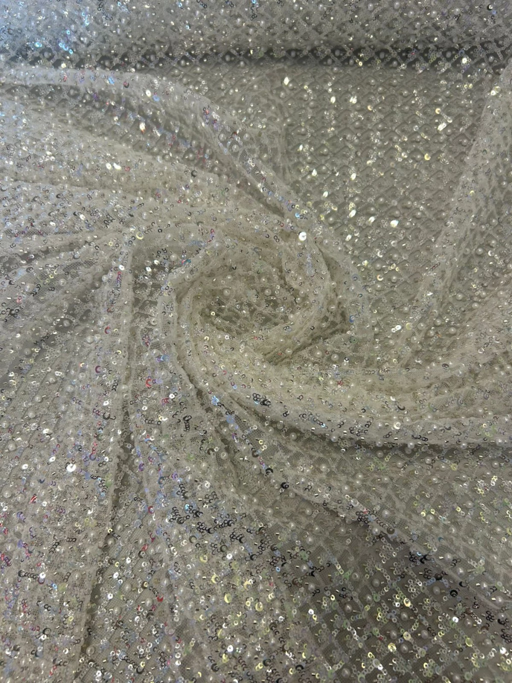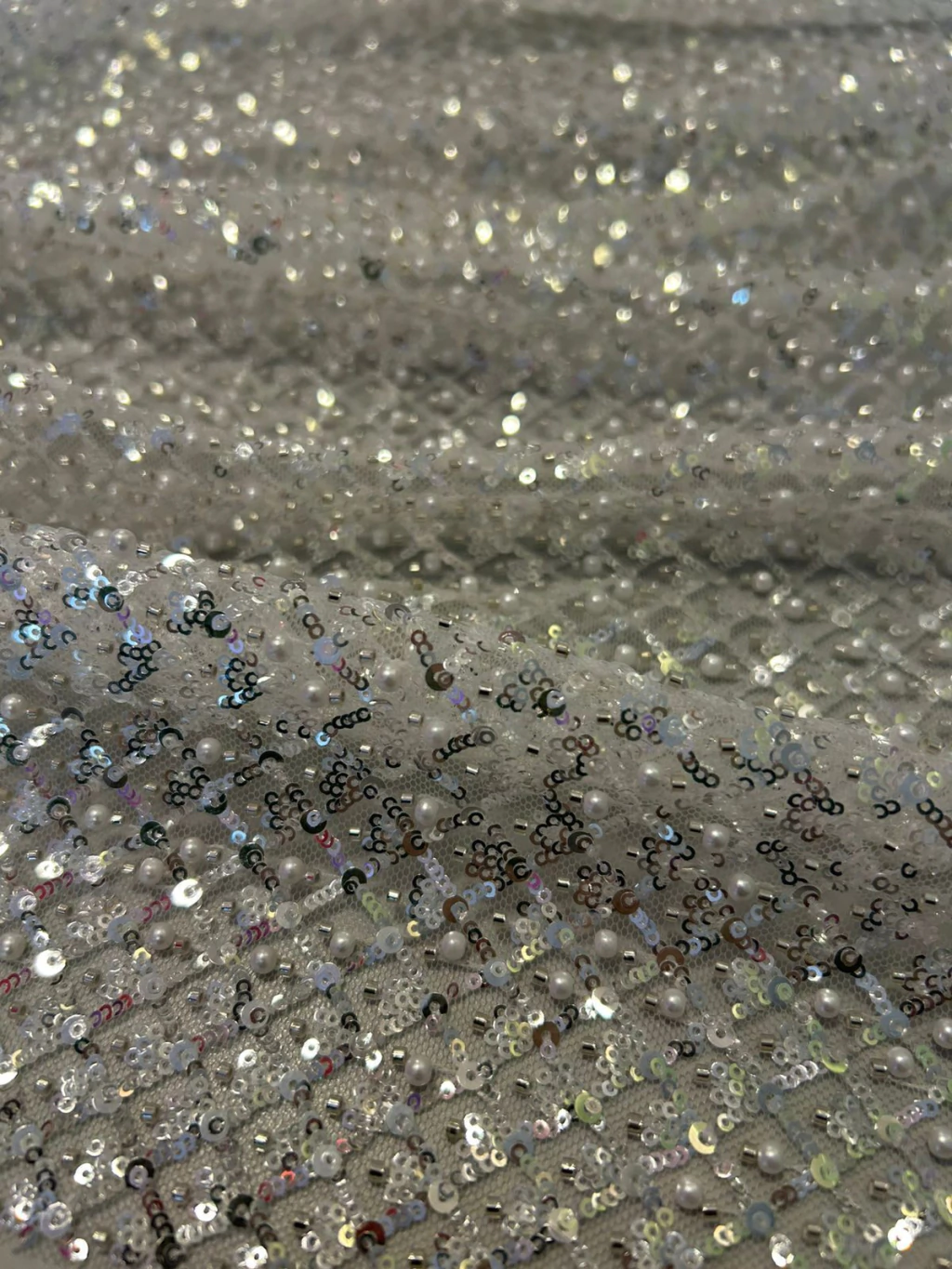 O Tule Bordado Premium é delicado e sofisticado. Confeccionado em uma base maleável e fluida, com leve elasticidade que proporciona conforto e melhor ajuste ao corpo. O tule é mais macio que os modelos tradicionais, o que confere excelente caimento e versatilidade para peças ajustadas ou com movimento. O bordado rico em pérolas, pedrarias e micropaetês trazem um brilho elegante, ideal para roupas de festa, detalhes em vestidos, mangas, tops, aplicações. Uma escolha perfeita para quem busca sofisticação, flexibilidade e acabamento de alto padrão em peças sob medida.
