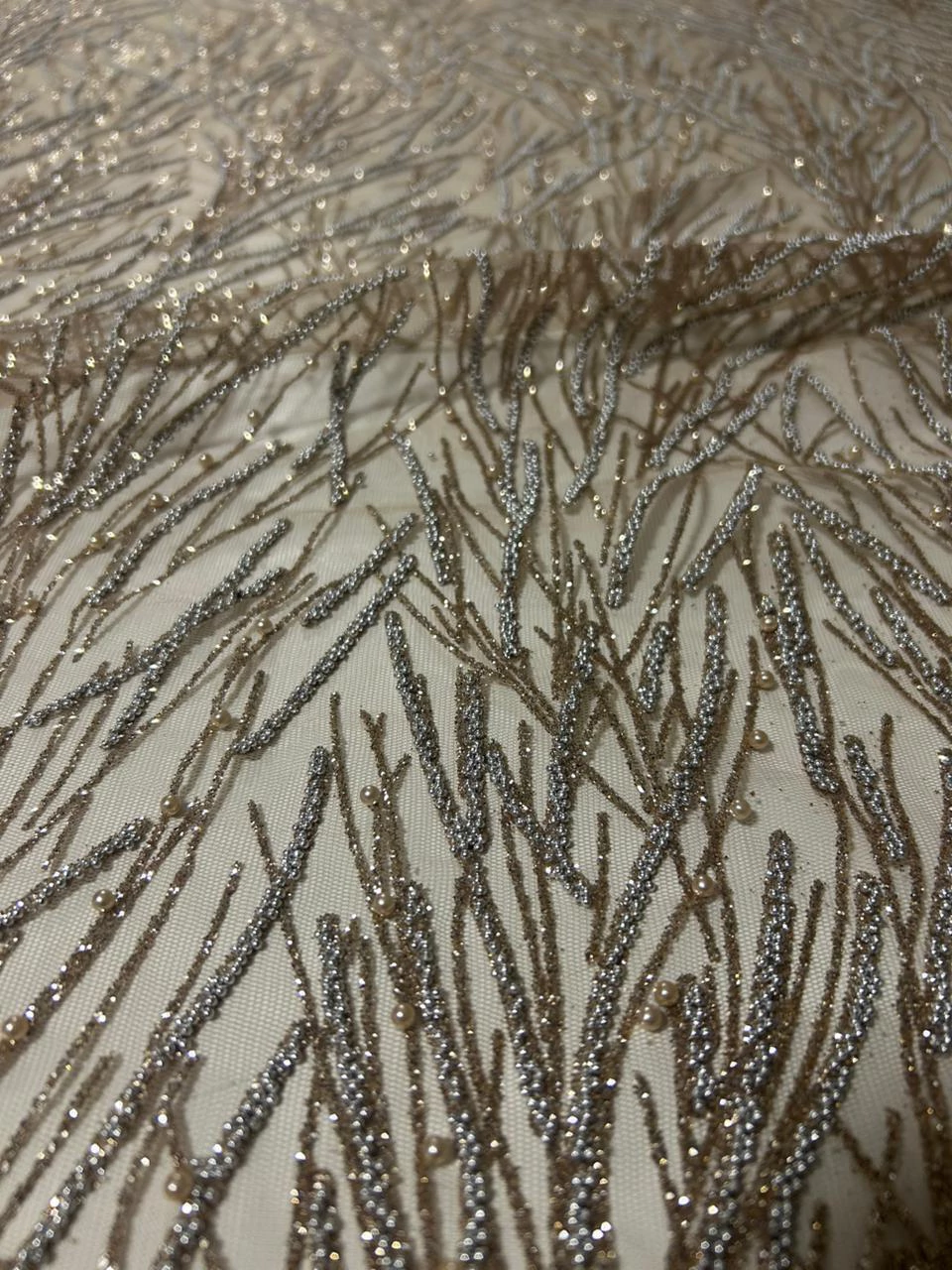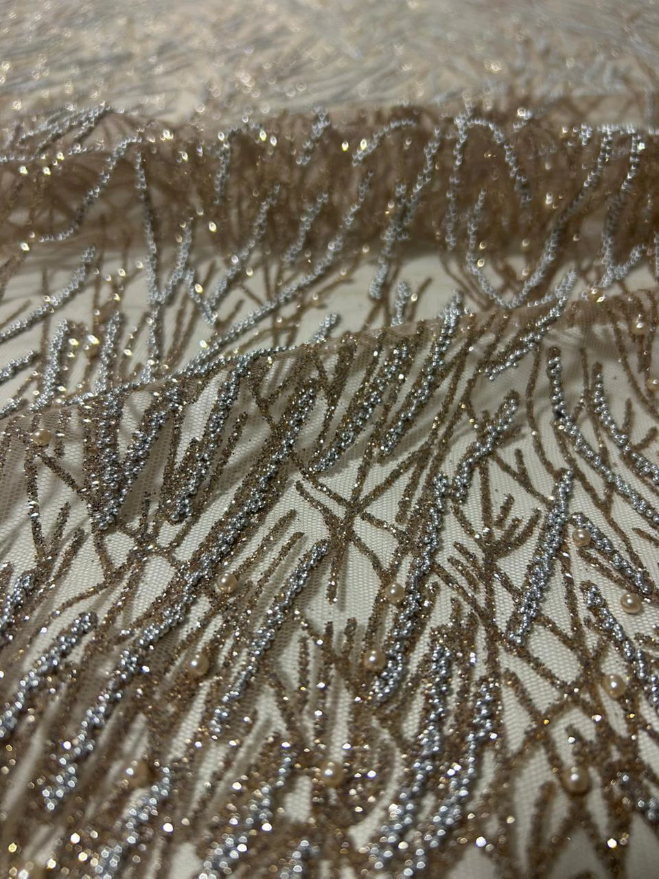 O Tule Bordado Premium é delicado e sofisticado. Confeccionado em uma base maleável e fluida, com leve elasticidade que proporciona conforto e melhor ajuste ao corpo. O tule é mais macio que os modelos tradicionais, o que confere excelente caimento e versatilidade para peças ajustadas ou com movimento. O bordado rico em pérolas, pedrarias e micropaetês trazem um brilho elegante, ideal para roupas de festa, detalhes em vestidos, mangas, tops, aplicações. Uma escolha perfeita para quem busca sofisticação, flexibilidade e acabamento de alto padrão em peças sob medida.