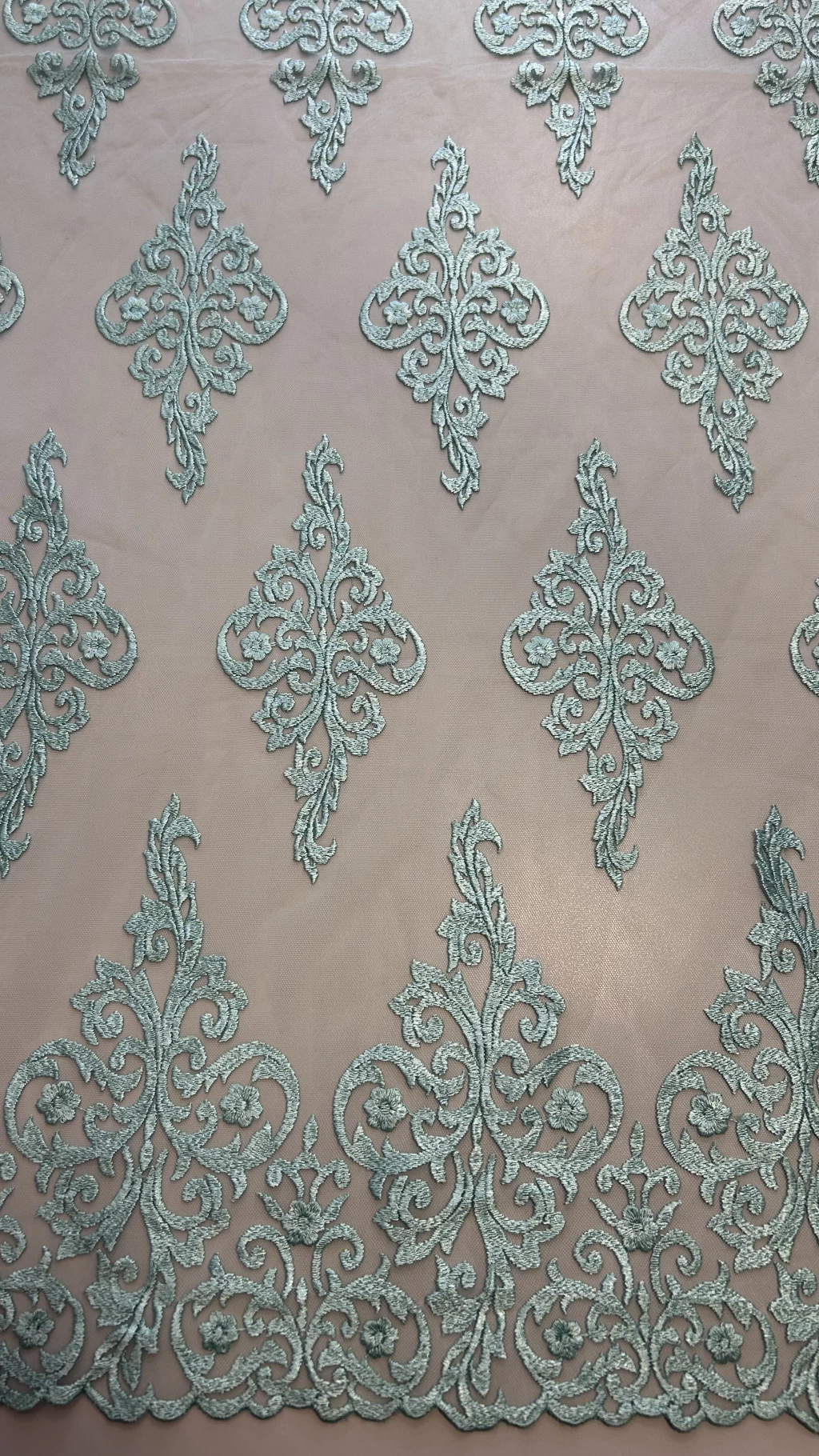 A Renda Bordada com Pedrarias é elegante, sofisticada, clássica, delicada e atemporal, sendo um símbolo dos tecidos mais desejados na moda festa e noiva. Aplicada sobre bases de tule, ela combina a transparência sutil com o brilho refinado das pedrarias, pérolas, e paetês, criando um visual luxuoso.