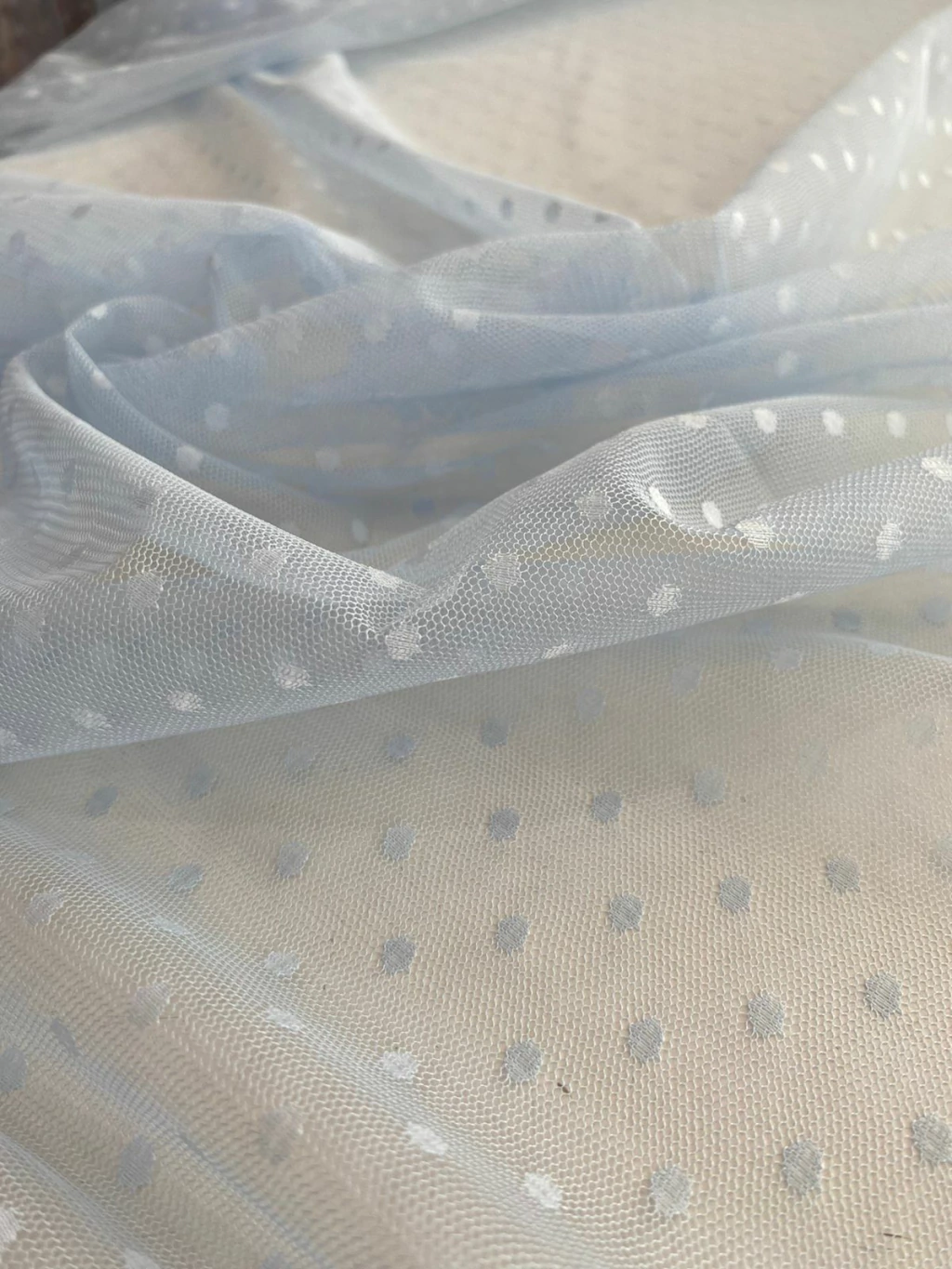 O Tule Poá é um tecido leve e transparente, que traz um charme todo especial graças aos seus delicados detalhes em poás (bolinhas). O Tule de Poá é ideal para vestidos, saias, blusas e detalhes sofisticados em roupas de festa e moda casual. Além de sua textura macia e acabamento suave, o Tule Poá oferece ótimo caimento e versatilidade, sendo perfeito para quem quer combinar delicadeza com um toque divertido e estiloso.