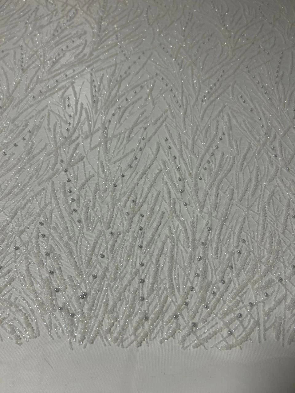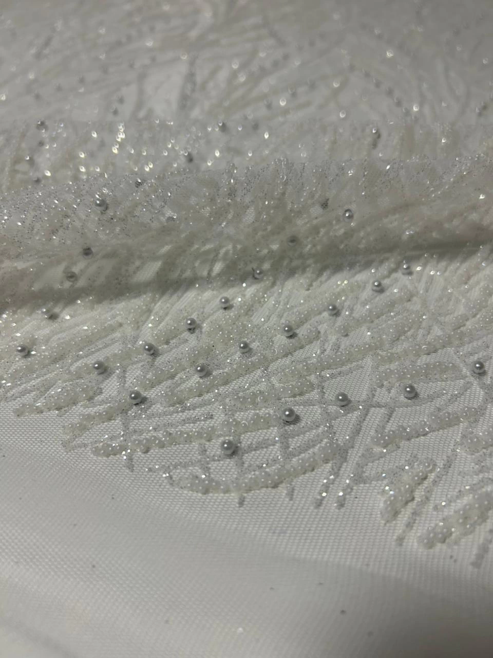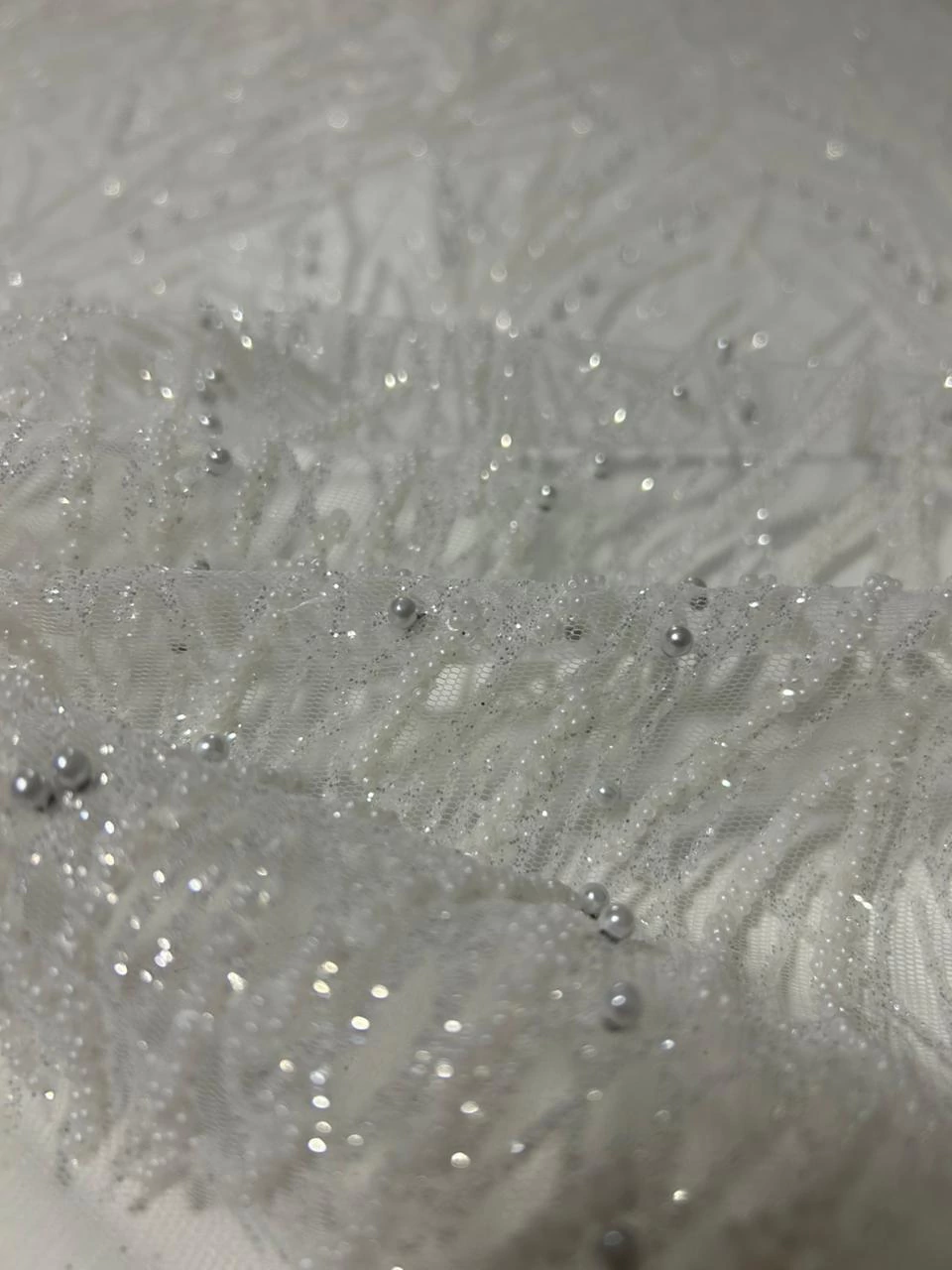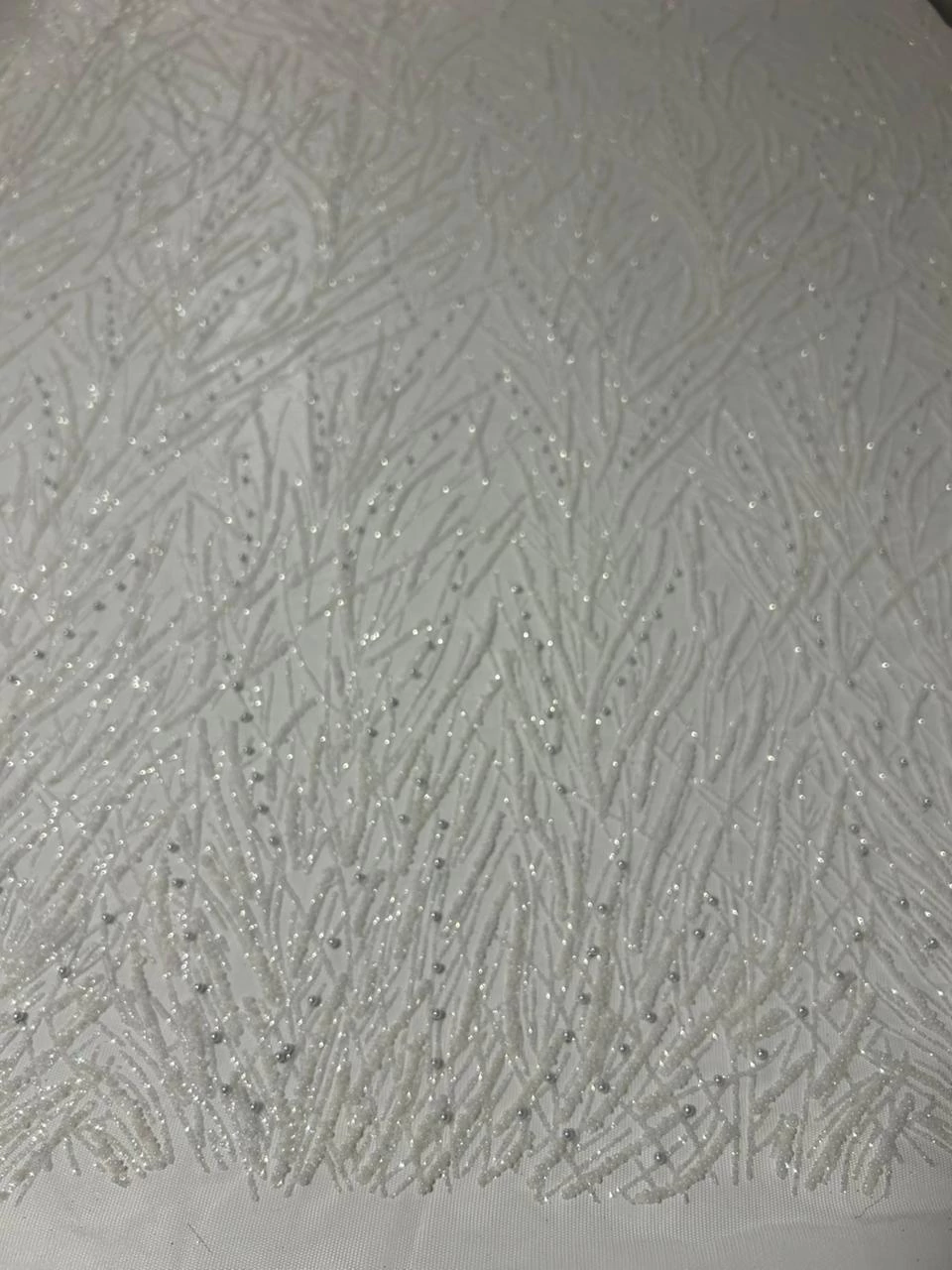 O Tule Bordado Premium é delicado e sofisticado. Confeccionado em uma base maleável e fluida, com leve elasticidade que proporciona conforto e melhor ajuste ao corpo. O tule é mais macio que os modelos tradicionais, o que confere excelente caimento e versatilidade para peças ajustadas ou com movimento. O bordado rico em pérolas, pedrarias e micropaetês trazem um brilho elegante, ideal para roupas de festa, detalhes em vestidos, mangas, tops, aplicações. Uma escolha perfeita para quem busca sofisticação, flexibilidade e acabamento de alto padrão em peças sob medida.